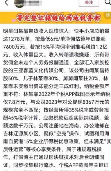 闫学晶如今成了个超级网红,带货带得火爆,销量也是杠杠的,稍微算一算,就能知道她这一年赚了不少。有人怀疑她把直播赚的钱都存进了自己开的公司,打算用公司名义来少交个人的税款。